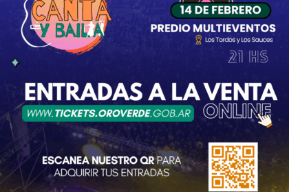 Ya se pueden adquirir tus entradas para Oro Verde Canta y Baila 2026, nuestra gran fiesta que se realizará el 14 de febrero en el Predio Multieventos (Los Tordos y Los Sauces).Apertura del escenario ...