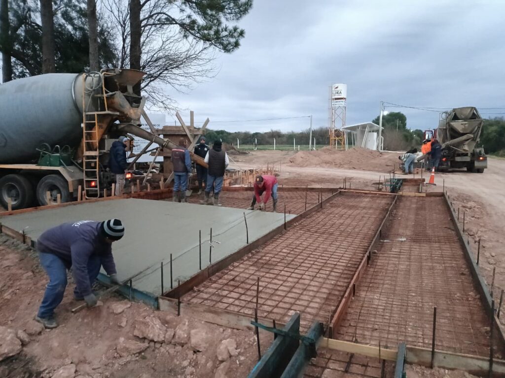 Días pasados, a pesar de la contingencia climática, se realizó el hormigonado en parte de una gran obra que esta desarrollando el Municipio de Aldea María Luisa: la ampliación de la planta urbana de la localidad hacia el oeste.