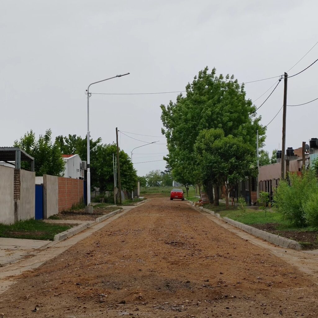En Pasaje Obras Sanitarias, entre Cepeda y Tratado del Pilar, se ejecutó cordón cuneta, se colocó ripio arcilloso y nueva iluminación LED.