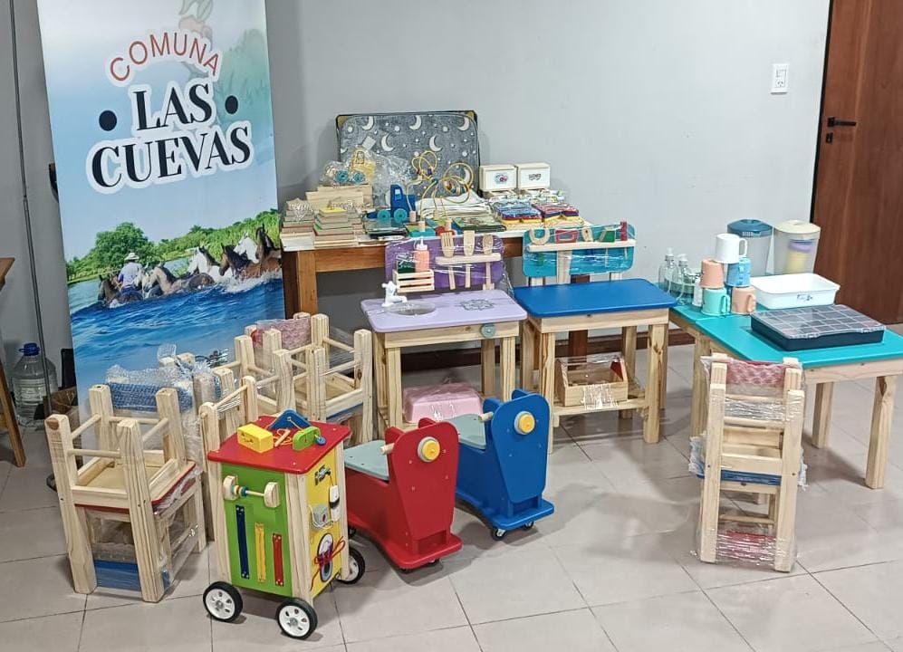Se incorporaron juegos y materiales de vajilla al espacio de cuidados para la primera infancia que funciona en la localidad de Las Cuevas, con el objetivo de ampliar su equipamiento y continuar fortaleciendo las actividades que allí se desarrollan.