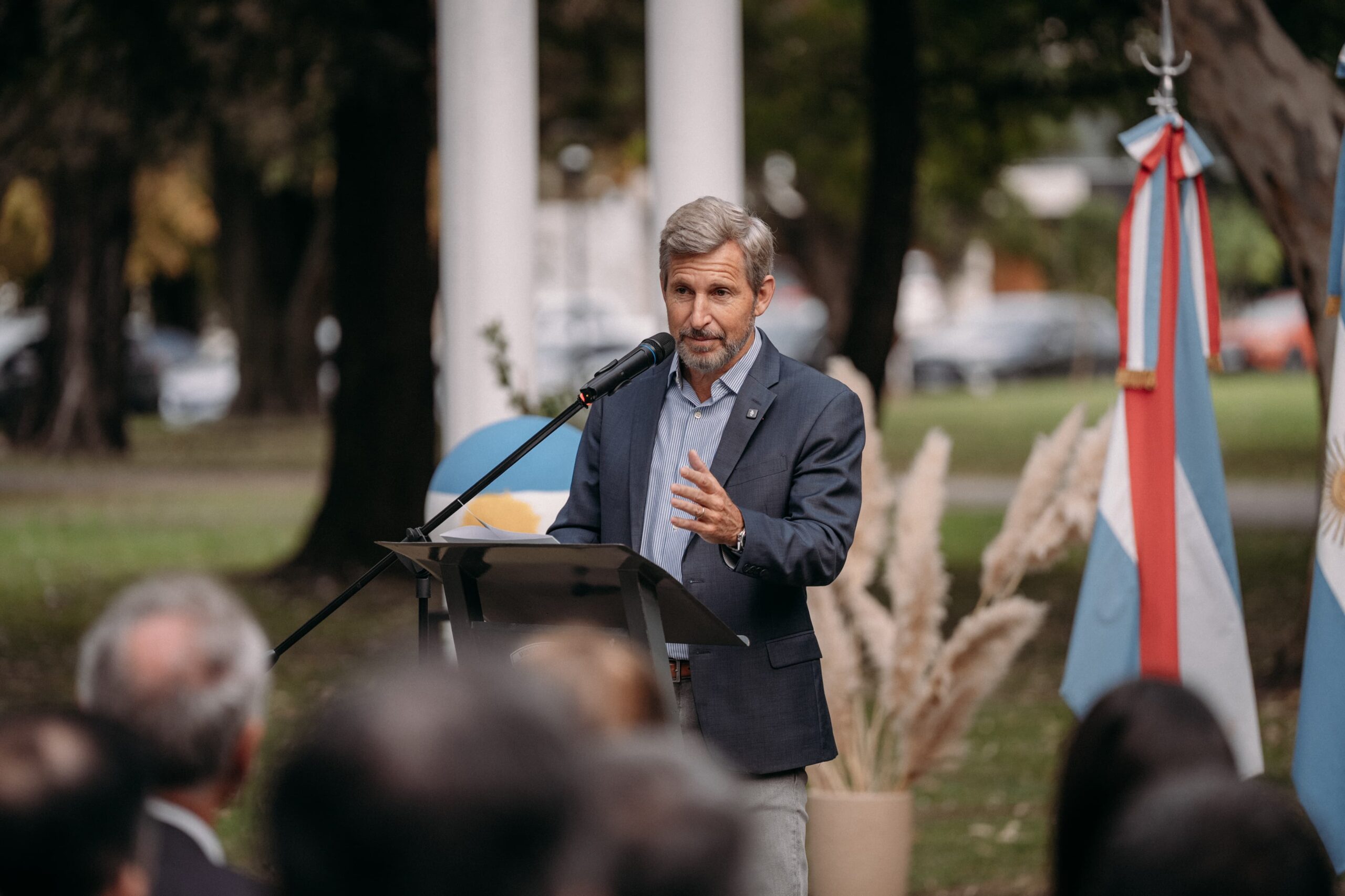 El mandatario estuvo junto al intendente de Crespo, Marcelo Cerutti, y el ministro de Planeamiento, Infraestructura y Servicios, Darío Schneider, en el acto oficial que se hizo en la pérgola antigua (de la década de 1890), ubicada en cercanías del Instituto Comercial Crespo y el Monumento a la Biblia.